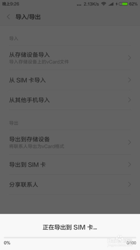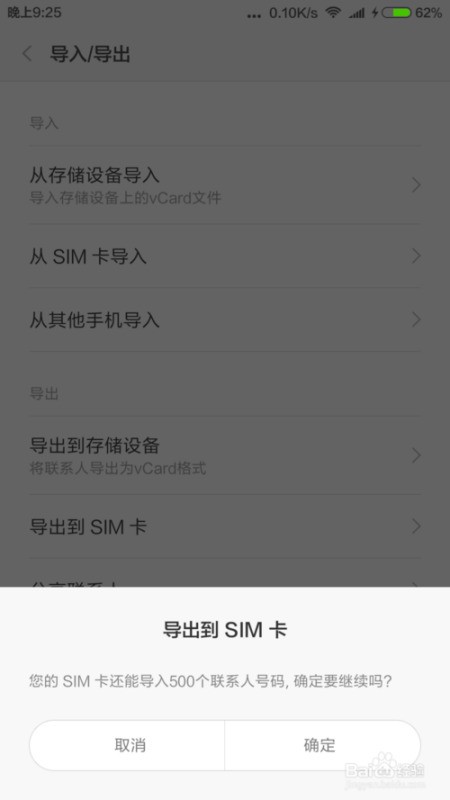 第四步,选择导出中的导出到SIM卡。出现如下提示。