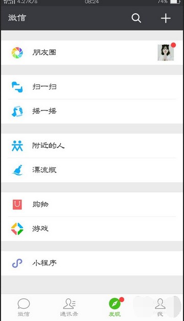 点击微信进入微信“发现”的界面,再点朋友圈去看朋友们的动态。