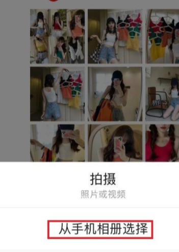 4、点击右上角“相机”按钮,在出现的下拉框中点击“从手机相册选择”。