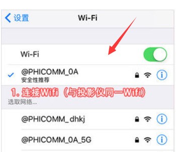 5、打开自己的手机WIFI,连接与投影仪相同的WIFI。