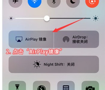 6、然后点击打开手机的AirPlay镜像功能。