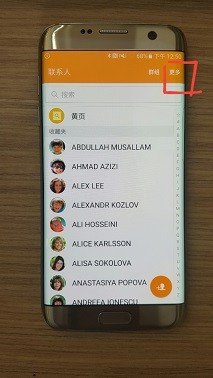 5、打开通讯录,我们会看到,在右上角有一个“更多”字样,点击“更多”