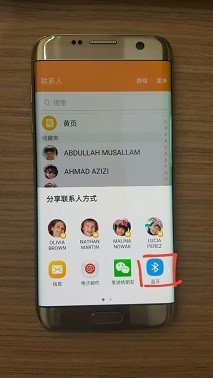 用蓝牙在两部手机间传输通讯录的具体操作方法如下: