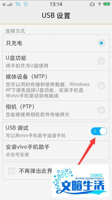 连接手机:使用USB线将vivo手机连接到电脑,根据工具提示打开手机“USB调试”开关。