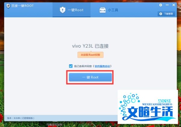 启动ROOT流程:运行“百度一键ROOT”工具,在程序主界面点击“一键ROOT”按钮,进入ROOT权限获取过程。