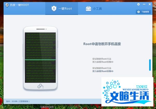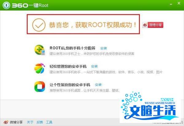 等待完成:ROOT过程中手机可能重启数次,待操作完成后,工具会提示“获取手机ROOT权限成功”。