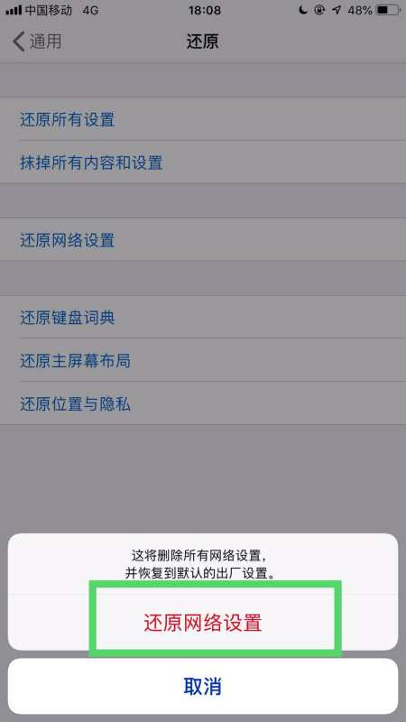 苹果手机还原网络设置时,只需要输入锁屏密码,就能够实现还原网络设置。具体操作如下: