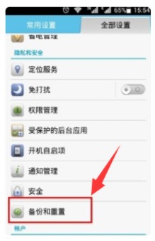 4,选择备份和重置功能。