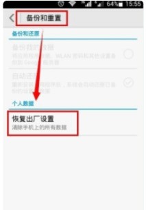 5,点击进去,选择恢复出厂设置。